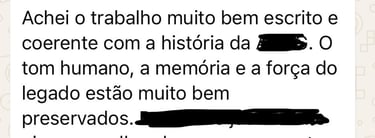 O processo inclui o encontro inicial, entrevistas, transcrição, escrita, revisão, edição e aprovação. Com o texto pronto, passaremos para a diagramação, design de capa, registros, publicação e entrega dos primeiros exemplares.